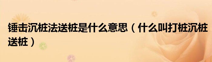 大家好,小育來為大家講解下。錘擊沉樁法送樁是什么意思,什么叫打樁沉樁送樁很多人還不知道,現(xiàn)在讓我們一起來看看吧!