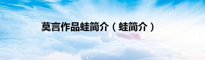 大家好,伊人來為大家解答以上問題。莫言作品蛙簡介,蛙簡介很多人還不知道,現在讓我們一起來看看吧!