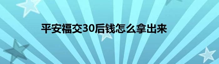 大家好,小育來為大家講解下。平安福交30后錢怎么拿出來很多人還不知道,現(xiàn)在讓我們一起來看看吧!