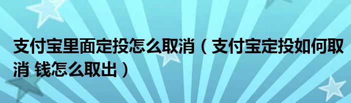 大家好,小育來(lái)為大家講解下。支付寶里面定投怎么取消,支付寶定投如何取消 錢(qián)怎么取出很多人還不知道,現(xiàn)在讓我們一起來(lái)看看吧!