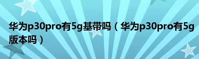 大家好,小育來為大家講解下。華為p30pro有5g基帶嗎,華為p30pro有5g版本嗎很多人還不知道,現(xiàn)在讓我們一起來看看吧!