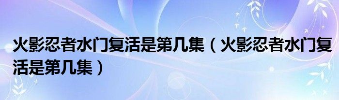 大家好,小育來為大家講解下?;鹩叭陶咚T復(fù)活是第幾集,火影忍者水門復(fù)活是第幾集很多人還不知道,現(xiàn)在讓我們一起來看看吧!