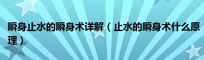 大家好,小育來為大家講解下。瞬身止水的瞬身術(shù)詳解,止水的瞬身術(shù)什么原理很多人還不知道,現(xiàn)在讓我們一起來看看吧!