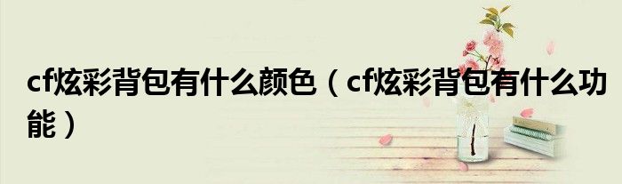 大家好,小育來為大家講解下。cf炫彩背包有什么顏色,cf炫彩背包有什么功能很多人還不知道,現(xiàn)在讓我們一起來看看吧!