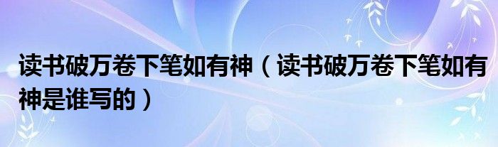 大家好,小育來(lái)為大家講解下。讀書破萬(wàn)卷下筆如有神,讀書破萬(wàn)卷下筆如有神是誰(shuí)寫的很多人還不知道,現(xiàn)在讓我們一起來(lái)看看吧!
