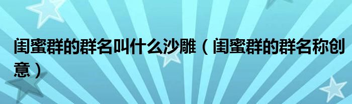 大家好,小育來為大家講解下。閨蜜群的群名叫什么沙雕,閨蜜群的群名稱創(chuàng)意很多人還不知道,現(xiàn)在讓我們一起來看看吧!