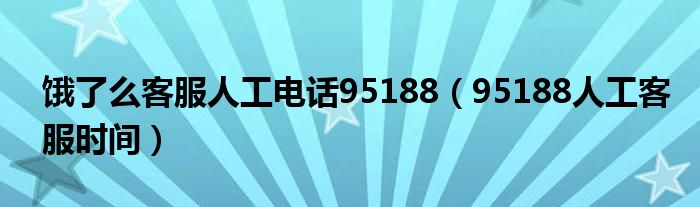 大家好,小育來為大家講解下。餓了么客服人工電話95188,95188人工客服時間很多人還不知道,現(xiàn)在讓我們一起來看看吧!