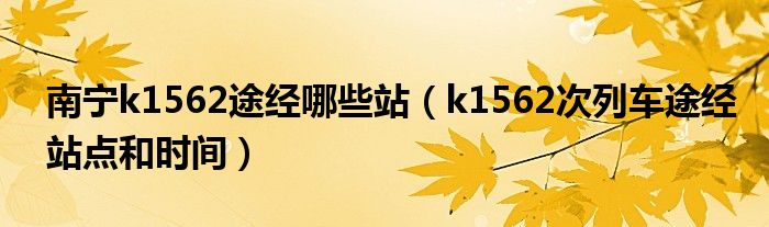 大家好,小育來為大家講解下。南寧k1562途經(jīng)哪些站,k1562次列車途經(jīng)站點和時間很多人還不知道,現(xiàn)在讓我們一起來看看吧!