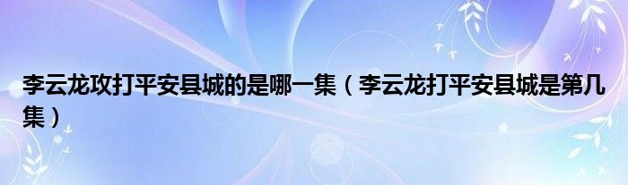 大家好,小育來(lái)為大家講解下。李云龍攻打平安縣城的是哪一集,李云龍打平安縣城是第幾集很多人還不知道,現(xiàn)在讓我們一起來(lái)看看吧!