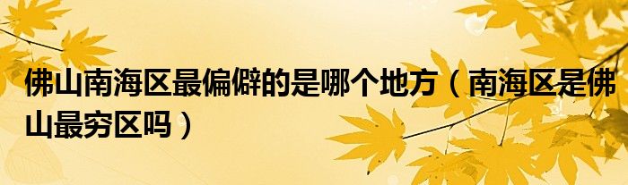 大家好,小育來為大家講解下。佛山南海區(qū)最偏僻的是哪個(gè)地方,南海區(qū)是佛山最窮區(qū)嗎很多人還不知道,現(xiàn)在讓我們一起來看看吧!
