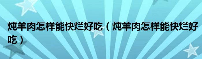 大家好,小育來為大家講解下。燉羊肉怎樣能快爛好吃,燉羊肉怎樣能快爛好吃很多人還不知道,現(xiàn)在讓我們一起來看看吧!