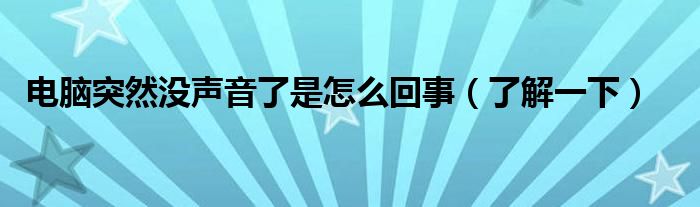 大家好,伊人來為大家解答以上問題。電腦突然沒聲音了是怎么回事,了解一下很多人還不知道,現(xiàn)在讓我們一起來看看吧!