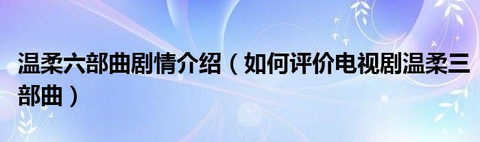 大家好,小育來為大家講解下。溫柔六部曲劇情介紹,如何評價(jià)電視劇溫柔三部曲很多人還不知道,現(xiàn)在讓我們一起來看看吧!