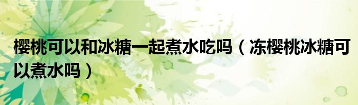 大家好,小育來為大家講解下。櫻桃可以和冰糖一起煮水吃嗎,凍櫻桃冰糖可以煮水嗎很多人還不知道,現(xiàn)在讓我們一起來看看吧!