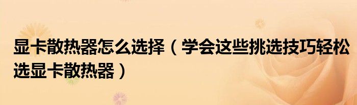 大家好,伊人來為大家解答以上問題。顯卡散熱器怎么選擇,學(xué)會(huì)這些挑選技巧輕松選顯卡散熱器很多人還不知道,現(xiàn)在讓我們一起來看看吧!