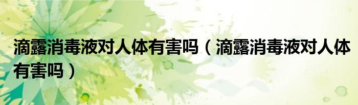 大家好,小育來為大家講解下。滴露消毒液對人體有害嗎,滴露消毒液對人體有害嗎很多人還不知道,現(xiàn)在讓我們一起來看看吧!