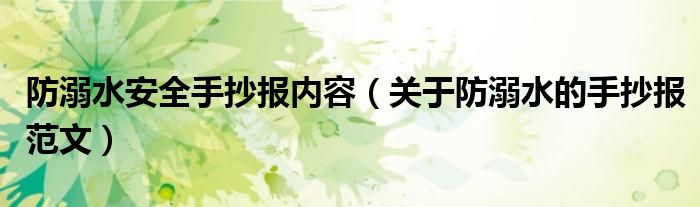 大家好,伊人來(lái)為大家解答以上問(wèn)題。防溺水安全手抄報(bào)內(nèi)容,關(guān)于防溺水的手抄報(bào)范文很多人還不知道,現(xiàn)在讓我們一起來(lái)看看吧!