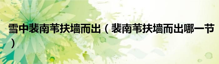 大家好,小育來為大家講解下。雪中裴南葦扶墻而出,裴南葦扶墻而出哪一節(jié)很多人還不知道,現(xiàn)在讓我們一起來看看吧!