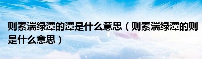 大家好,小育來為大家講解下。則素湍綠潭的潭是什么意思,則素湍綠潭的則是什么意思很多人還不知道,現(xiàn)在讓我們一起來看看吧!