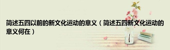 大家好,小育來(lái)為大家講解下。簡(jiǎn)述五四以前的新文化運(yùn)動(dòng)的意義,簡(jiǎn)述五四新文化運(yùn)動(dòng)的意義何在很多人還不知道,現(xiàn)在讓我們一起來(lái)看看吧!
