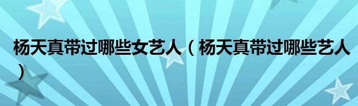 大家好,小育來(lái)為大家講解下。楊天真帶過(guò)哪些女藝人,楊天真帶過(guò)哪些藝人很多人還不知道,現(xiàn)在讓我們一起來(lái)看看吧!