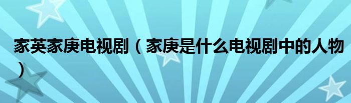 大家好,小育來為大家講解下。家英家庚電視劇,家庚是什么電視劇中的人物很多人還不知道,現(xiàn)在讓我們一起來看看吧!