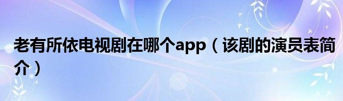 大家好,伊人來為大家解答以上問題。老有所依電視劇在哪個(gè)app,該劇的演員表簡(jiǎn)介很多人還不知道,現(xiàn)在讓我們一起來看看吧!