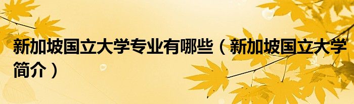 大家好,伊人來為大家解答以上問題。新加坡國立大學(xué)專業(yè)有哪些,新加坡國立大學(xué)簡介很多人還不知道,現(xiàn)在讓我們一起來看看吧!