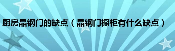 大家好,小育來(lái)為大家講解下。廚房晶鋼門(mén)的缺點(diǎn),晶鋼門(mén)櫥柜有什么缺點(diǎn)很多人還不知道,現(xiàn)在讓我們一起來(lái)看看吧!