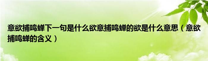 大家好,伊人來為大家解答以上問題。意欲捕鳴蟬下一句是什么欲意捕鳴蟬的欲是什么意思,意欲捕鳴蟬的含義很多人還不知道,現(xiàn)在讓我們一起來看看吧!