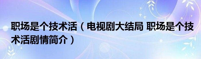 大家好,伊人來為大家解答以上問題。職場(chǎng)是個(gè)技術(shù)活,電視劇大結(jié)局 職場(chǎng)是個(gè)技術(shù)活劇情簡(jiǎn)介很多人還不知道,現(xiàn)在讓我們一起來看看吧!
