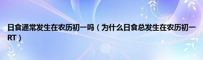 大家好,小育來為大家講解下。日食通常發(fā)生在農(nóng)歷初一嗎,為什么日食總發(fā)生在農(nóng)歷初一RT很多人還不知道,現(xiàn)在讓我們一起來看看吧!