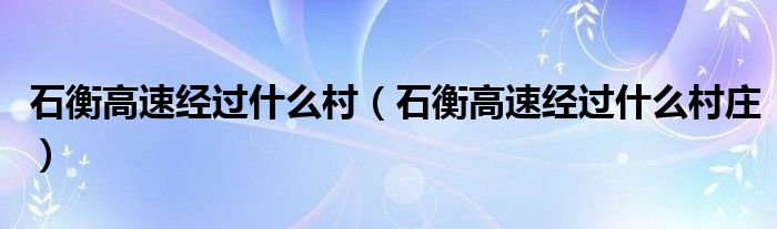 大家好,小育來為大家講解下。石衡高速經(jīng)過什么村,石衡高速經(jīng)過什么村莊很多人還不知道,現(xiàn)在讓我們一起來看看吧!