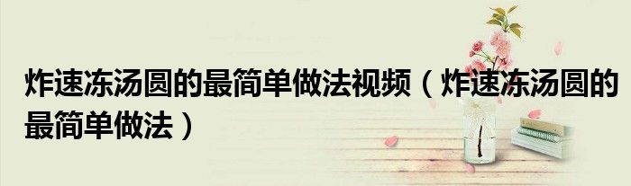 大家好,小育來為大家講解下。炸速凍湯圓的最簡單做法視頻,炸速凍湯圓的最簡單做法很多人還不知道,現(xiàn)在讓我們一起來看看吧!