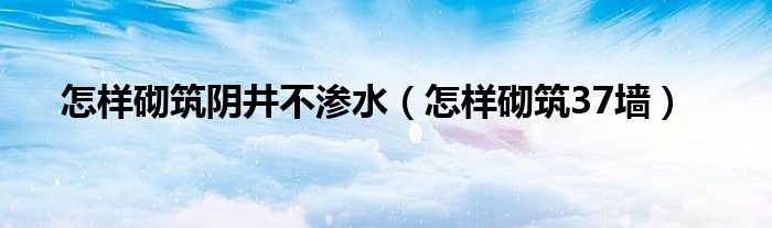 大家好,小育來為大家講解下。怎樣砌筑陰井不滲水,怎樣砌筑37墻很多人還不知道,現(xiàn)在讓我們一起來看看吧!