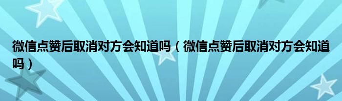 大家好,小育來為大家講解下。微信點(diǎn)贊后取消對方會知道嗎,微信點(diǎn)贊后取消對方會知道嗎很多人還不知道,現(xiàn)在讓我們一起來看看吧!