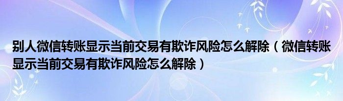 大家好,小育來為大家講解下。別人微信轉(zhuǎn)賬顯示當前交易有欺詐風(fēng)險怎么解除,微信轉(zhuǎn)賬顯示當前交易有欺詐風(fēng)險怎么解除很多人還不知道,現(xiàn)在讓我們一起來看看吧!