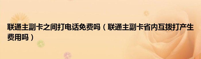 大家好,小育來為大家講解下。聯(lián)通主副卡之間打電話免費嗎,聯(lián)通主副卡省內(nèi)互撥打產(chǎn)生費用嗎很多人還不知道,現(xiàn)在讓我們一起來看看吧!