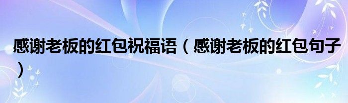 大家好,小育來(lái)為大家講解下。感謝老板的紅包祝福語(yǔ),感謝老板的紅包句子很多人還不知道,現(xiàn)在讓我們一起來(lái)看看吧!