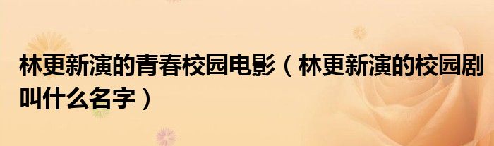 大家好,小育來為大家講解下。林更新演的青春校園電影,林更新演的校園劇叫什么名字很多人還不知道,現在讓我們一起來看看吧!