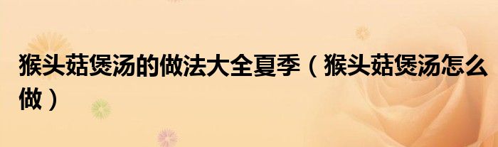 大家好,小育來為大家講解下。猴頭菇煲湯的做法大全夏季,猴頭菇煲湯怎么做很多人還不知道,現(xiàn)在讓我們一起來看看吧!