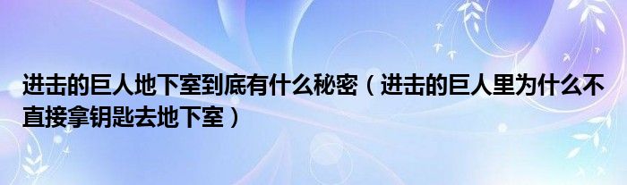 大家好,小育來為大家講解下。進(jìn)擊的巨人地下室到底有什么秘密,進(jìn)擊的巨人里為什么不直接拿鑰匙去地下室很多人還不知道,現(xiàn)在讓我們一起來看看吧!