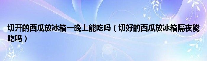 大家好,小育來為大家講解下。切開的西瓜放冰箱一晚上能吃嗎,切好的西瓜放冰箱隔夜能吃嗎很多人還不知道,現(xiàn)在讓我們一起來看看吧!