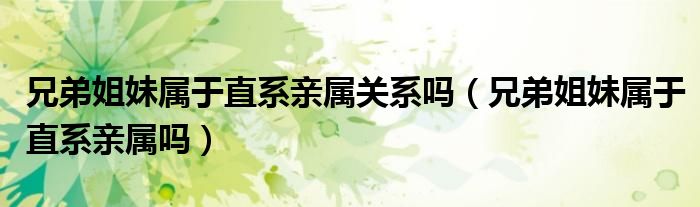 大家好,小育來為大家講解下。兄弟姐妹屬于直系親屬關系嗎,兄弟姐妹屬于直系親屬嗎很多人還不知道,現(xiàn)在讓我們一起來看看吧!