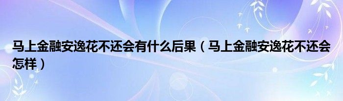 大家好,小育來為大家講解下。馬上金融安逸花不還會(huì)有什么后果,馬上金融安逸花不還會(huì)怎樣很多人還不知道,現(xiàn)在讓我們一起來看看吧!