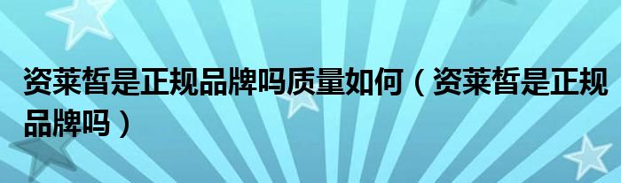 大家好,小育來(lái)為大家講解下。資萊皙是正規(guī)品牌嗎質(zhì)量如何,資萊皙是正規(guī)品牌嗎很多人還不知道,現(xiàn)在讓我們一起來(lái)看看吧!