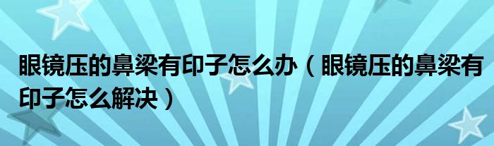 大家好,小育來為大家講解下。眼鏡壓的鼻梁有印子怎么辦,眼鏡壓的鼻梁有印子怎么解決很多人還不知道,現(xiàn)在讓我們一起來看看吧!