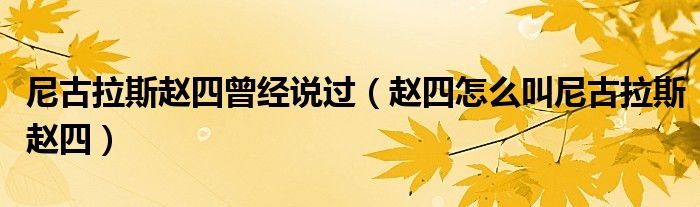 大家好,小育來為大家講解下。尼古拉斯趙四曾經(jīng)說過,趙四怎么叫尼古拉斯趙四很多人還不知道,現(xiàn)在讓我們一起來看看吧!