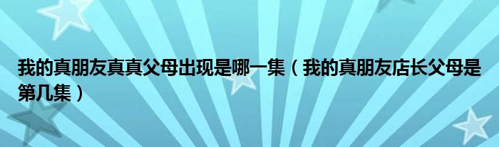 大家好,小育來為大家講解下。我的真朋友真真父母出現(xiàn)是哪一集,我的真朋友店長(zhǎng)父母是第幾集很多人還不知道,現(xiàn)在讓我們一起來看看吧!