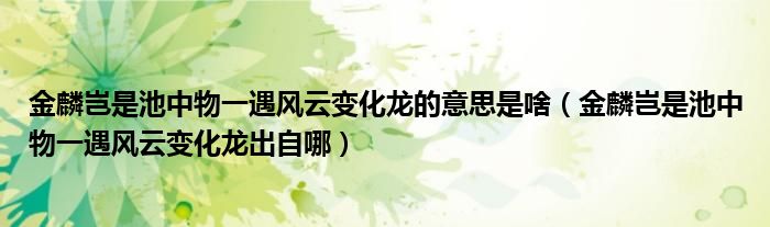 大家好,伊人來為大家解答以上問題。金麟豈是池中物一遇風(fēng)云變化龍的意思是啥,金麟豈是池中物一遇風(fēng)云變化龍出自哪很多人還不知道,現(xiàn)在讓我們一起來看看吧!
